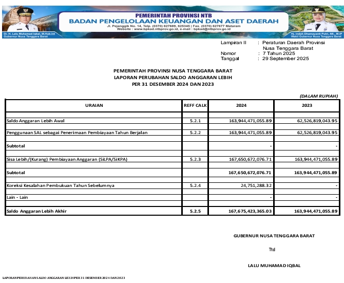 BPKAD NTB Ringkasan Laporan Realisasi Anggaran Tahun 2024 ke 3.
