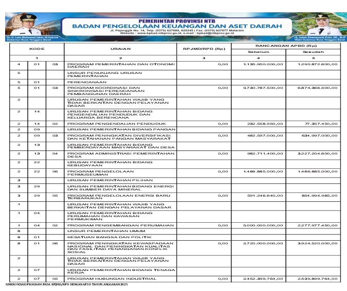 Info Keuangan BPKAD NTB : Ringkasan Perubahan APBD yang di Klarifikasi Menurut Jenis dan...