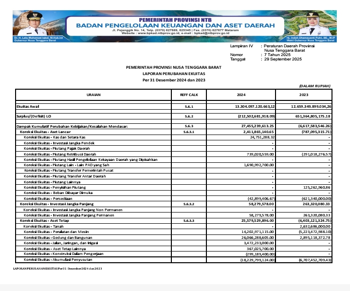 BPKAD NTB Ringkasan Laporan Realisasi Anggaran Tahun 2024 ke 6.